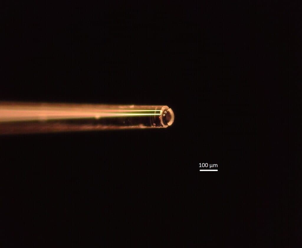 Single lens printed on the tip of an optical fiber - Realized with microFAB-3DAdvanced